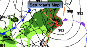 This is our 7th consecutive Saturday with rain. Oy vey! Low pressure will move from just East of NYC this morning to Eastern New England by later today. On its journey it will intensify rapidly. There will be a shield of rain on the Western side of the storm that will affect much of the NYC vicinity this morning. The band of rain will move to the North and East during the afternoon. Rain will taper off along the urban corridor toward midday. Rain will continue for parts of Long Island and Connecticut during the afternoon. Farther to the West clouds should break for some sun. Winds will pick up behind the departing low. Gusts up to 35mph are likely. Secure any Halloween decorations!
