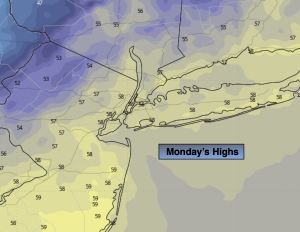 Mostly sunny, breezy in the morning. Cool. Highs in the upper 50s. Northwest winds at 10-20mph and diminishing.