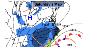 An intense Western Atlantic storm on Sunday will continue to move up and well off the coast. The Northwestern shield of snow will stay offshore. It will be windy and very cold under a mix of sun and clouds.