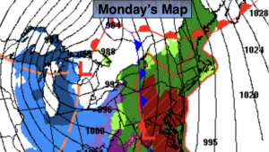 It’ll be cooler on Tuesday and Wednesday with abundant sunshine as high pressure moves from the Ohio Valley to off the East coast.