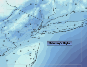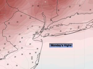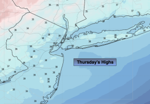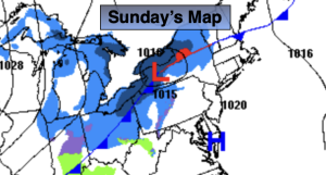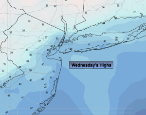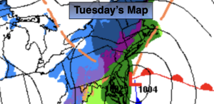 A blast of Arctic air will arrive Monday with readings hard pressed to get to 30º. Wind chills will be in the teens and lower 20s under partly sunny skies. Tuesday we’ll come out of the ice box, just barely! It’ll be a better feel Wednesday as a Southwest flow of somewhat milder air works in ahead of an approaching cold front. A few showers are possible.