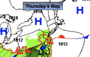 And that’s the weather-a dramatic improvement in the forecast for Saturday. The weak area of low pressure (that was forecast to give many areas from the City and to the South times of rain has fallen apart today. The good news is that most of the region will be dry and become mainly sunny. Well to the South over Southern NJ showers are possible for the first half of the day. Even here the sun may win the battle during the afternoon. Temperatures where the sun does shine will be near the seasonal averages of the mid 80s. It’ll be cooler to the South and at the coast.