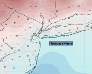 Partly cloudy. Lows in the mid to upper teens the City, single digits to lower teens inland. North wind 5-10mph.