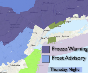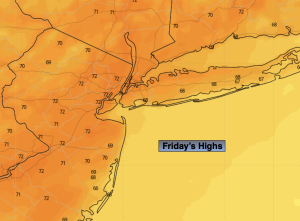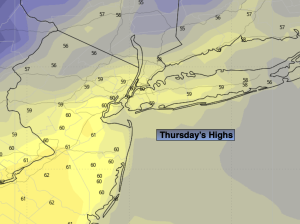Clear. Coldest night of the season so far. Lows in the mid 40s in the City, near 30º well inland. Northwest winds at 5-10mph.