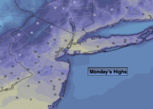 The low will move off the coast early Friday morning. Skies will become partly sunny but the wind will be busy. Readings will be near the average highs of the upper 50s.