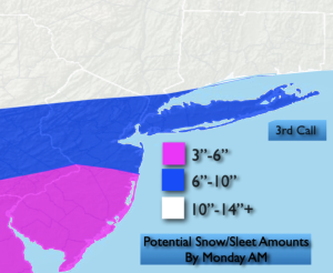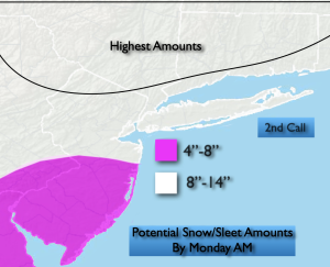 There is a low potential of some coastal snow Sunday. The computer models do have low pressure developing off the Southeast coast. How far North it goes up and off the coast will determine how much, if any snow the tri-state area will see. The coast will have the greatest threat of seeing any snow. It will be windy. We’ll continue to monitor the latest computer guidance.