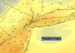 Today will feature a low pressure trough over the region. A mix of clouds and sun is expected. Isolated showers are possible, the best chance is during the afternoon. It’ll be breezy and cool with readings about five degrees below the average high of the mid 60s.