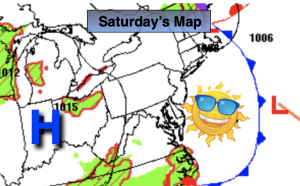 The weekend will make most smile. Drier conditions are expected with the sun dominating both days as high pressure builds over the area. A winner for sure!