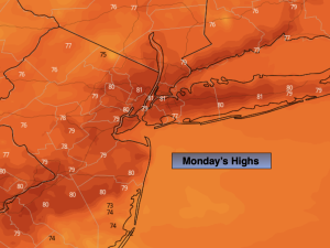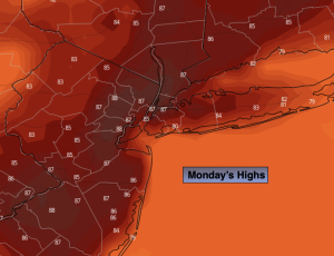 Hazy, very warm and humid conditions are expected for the beginning of the week with high pressure dominating. Typical July conditions for sure.