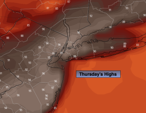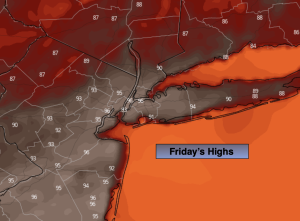 Hazy, hot and humid. Highs in the mid 90s. Heat index: 100º-106º.