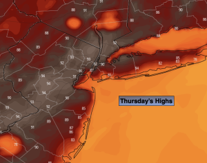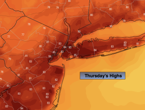Hazy, hot and humid conditions will continue today as high pressure off the coast will be responsible for our sticky conditions. Readings will be at least five degrees above the average high of 85º.
