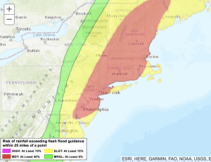 The weather pattern through Sunday is conducive for areas of torrential rain and thunderstorms. A Flood Watch and a moderate risk for excessive rain is in the forecast. Weak low pressure, very humid air and a disturbance in the atmosphere will result in the potential for up to a few to several inches of rain through this evening. Many areas are saturated from previous rainfall so it won’t take much for areas to flood. If you encounter a flooded roadway- Turn around don’t drown. You never know how deep the water is. Any scattered areas of rain or storms will end later this evening.