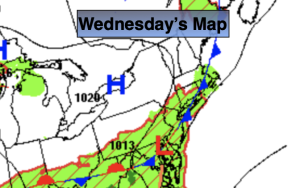 A warm front has moved through the region. The main result of this frontal passage is an dramatic increase in humidity. Hazy sunshine is expected today. Scattered storms a few which maybe severe will develop after 4pm. Keep an eye to the sky for threatening weather conditions. Readings will be near the seasonable average of the mid 80s.