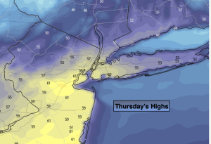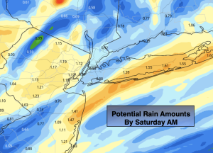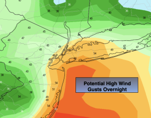 This system looks to carry with it copious amounts of precipitation overnight as a secondary storm develops along the Delmarva and moves just Southeast of NYC. This time frame will be the brunt of the storm. One to two inches of rain is quite likely. Winds will increase and become strong Friday night. Gusts to 50mph are possible mainly at the coast. Coastal tidal flooding is also of concern for Saturday morning’s high tide cycle.