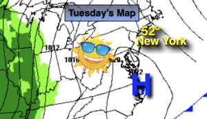 There will be no change in our stretch of Spring-like readings through Friday. Readings will be ten to twenty degrees above the average high. An April feel will greet us once again (by midweek), as a strong Southwest flow develops around a Western Atlantic high. Until this time skies will be mainly sunny.